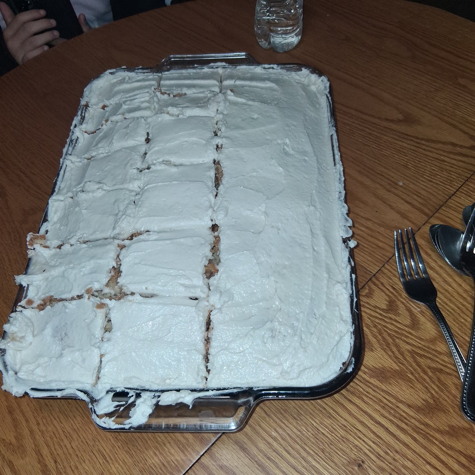 This cake is made with farm-fresh ingredients and comes in a variety of sizes, ranging from 8x8 to 9x13. Larger cakes incur an additional cost due to the use of cream cheese icing.